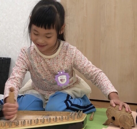 ピアノやドラムの他にも、音楽療法士による珍しい民族楽器での療育や、弦楽器での療育も行われています。